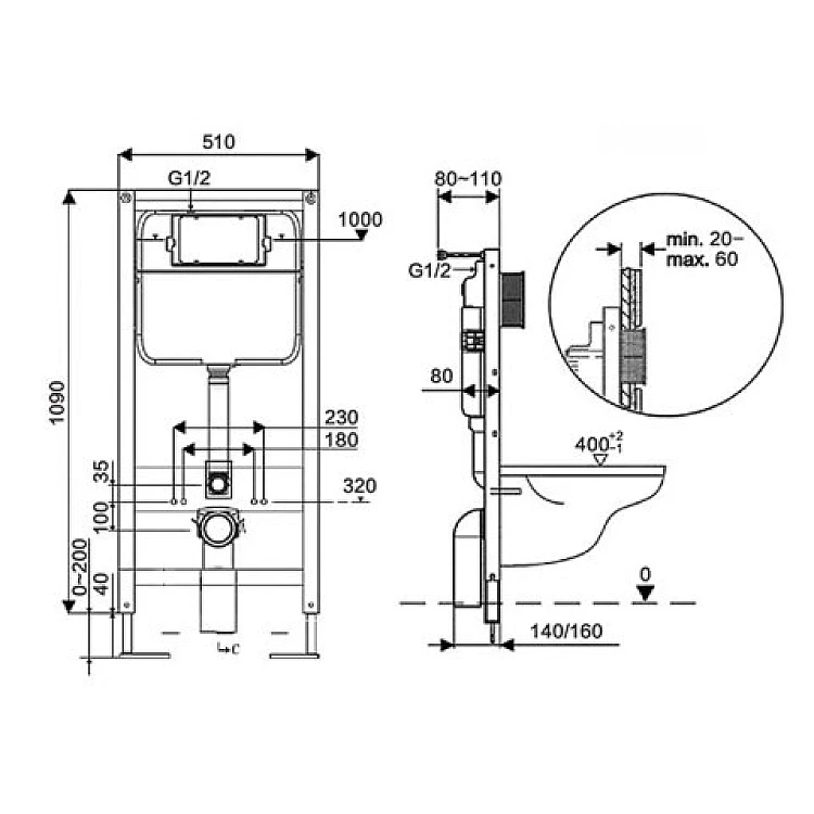 высоты крепления чаши унитаза от 320 до 560 мм.