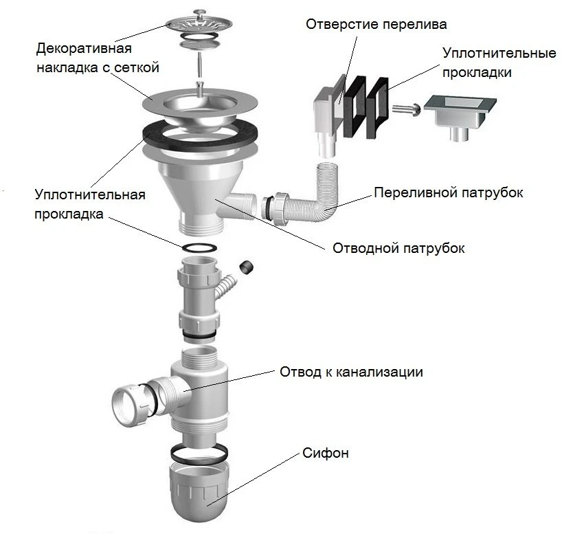 Чтобы легче было это все сделать, просмотрите фото строения сифона. Благодаря этому у вас будет полная картина, из чего он состоит.