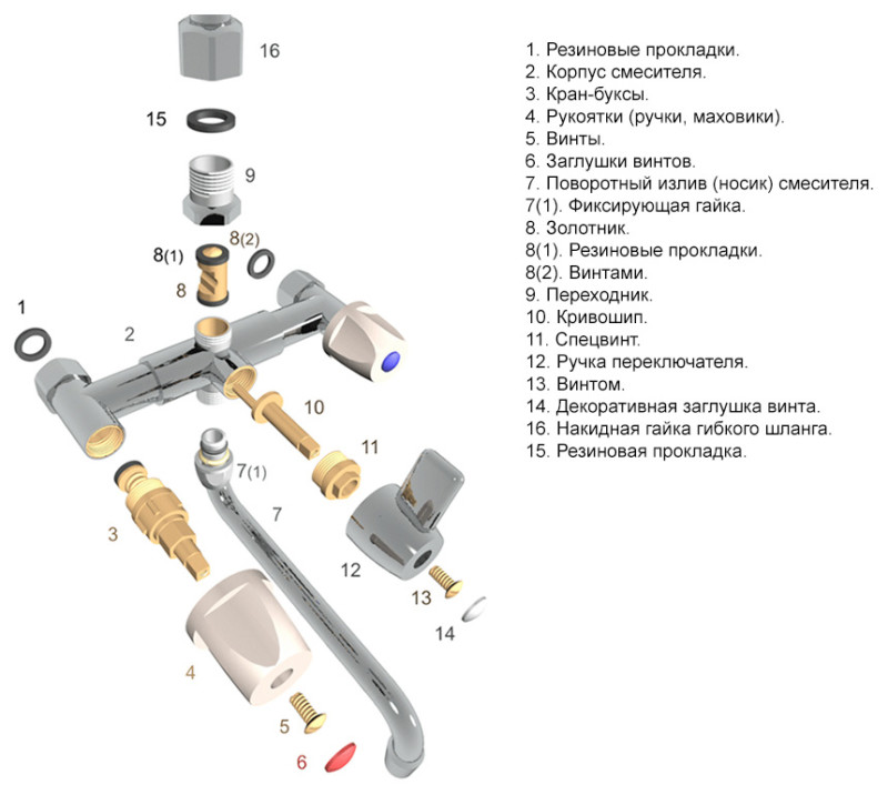 Прежде чем разобрать кран в ванне, раковине, изучите его устройство. Наиболее популярные модели – однорычажные и двухвентильные. Они различаются конструктивными особенностями, поэтому схема разбора будет разной.