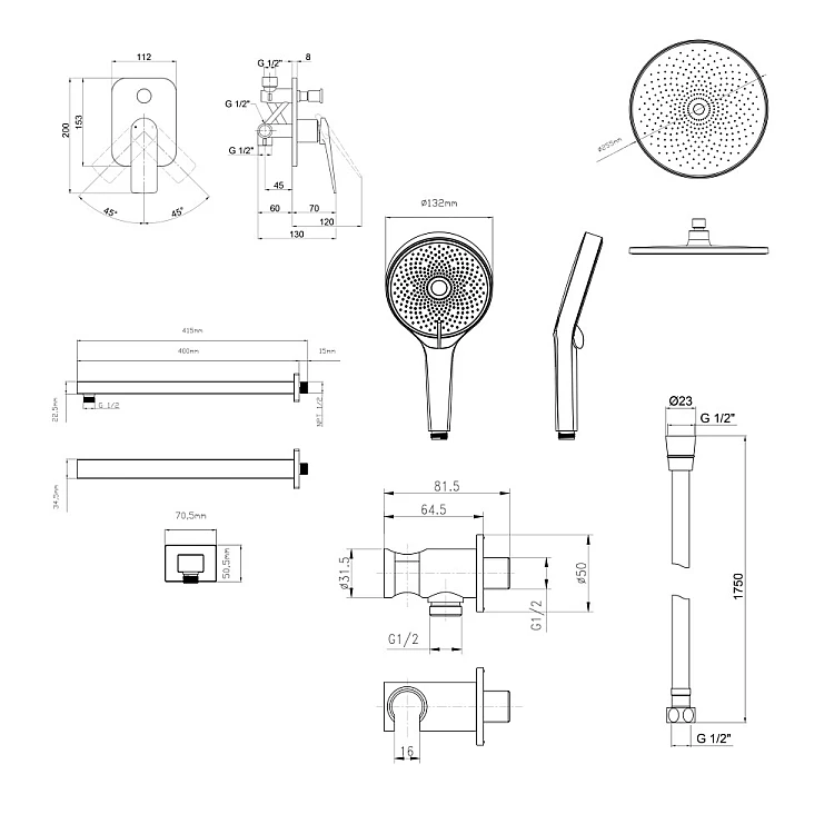 Комплект для душа Qtap Vlasta: Смеситель QTVLA6028102NC+Душ. набор( QTHLA107CRM45787+QTRUC125CRM45954+QTTRU120CRM45926+QTCRMBH030+LDNIA09CRM35458)