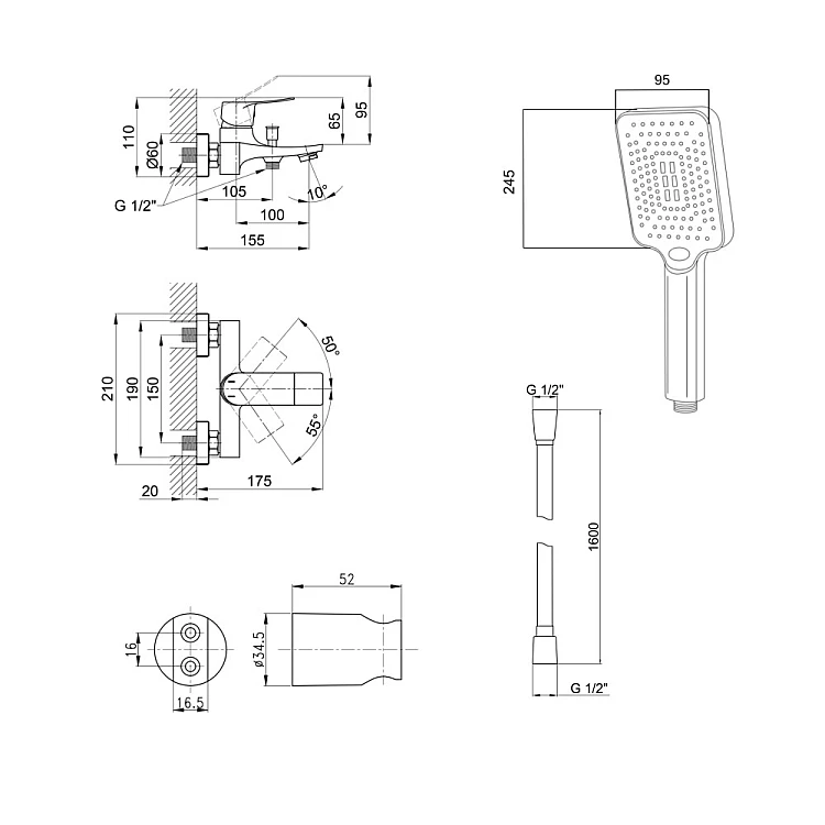 однорычажный, с душем
