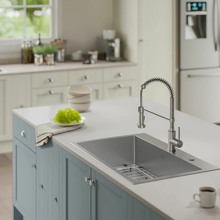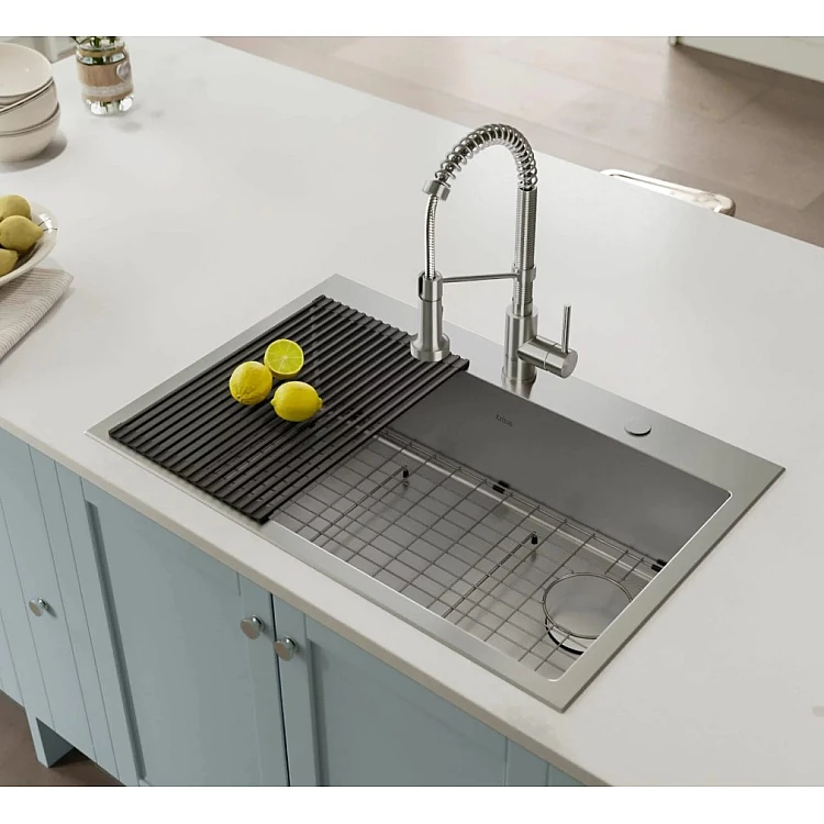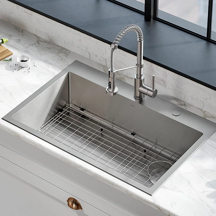 Мойка Loften™ из нержавеющей стали большой емкости со смещенным сливом, прямыми стенками и углами с малым радиусом придаст вашей кухне современный вид. Удобная конфигурация с двумя типами креплений позволяет устанавливать ее как под столешницу, так и сверху на кухонную стойку любого типа. Изготовлена вручную из высококачественной нержавеющей стали T304 с пологим дном и канавками, обеспечивающими отличный слив. Поставляется в паре с выдвижным смесителем коммерческого типа для создания цельного образа и оптимальной эффективности.
