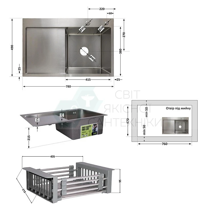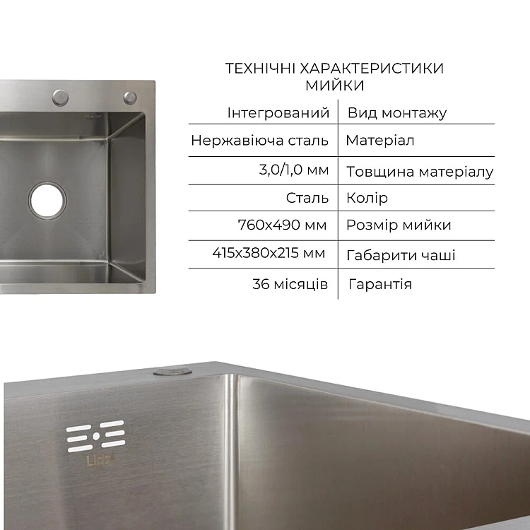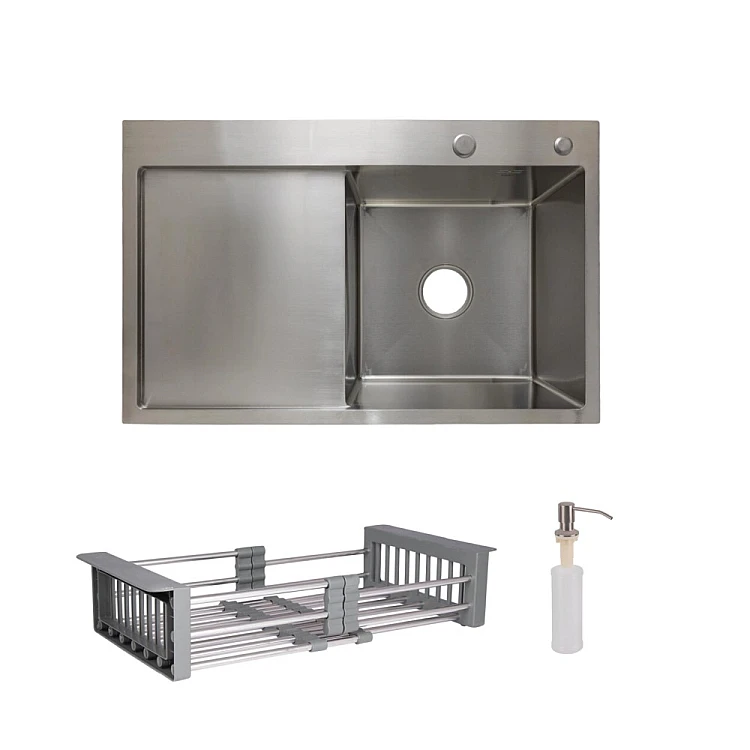 Комплект Lidz Handmade H7849L Мойка для кухни интегрированная крыло слева Brushed в комплекте с дозатором + Lidz K01G Корзина для кухонной мойки