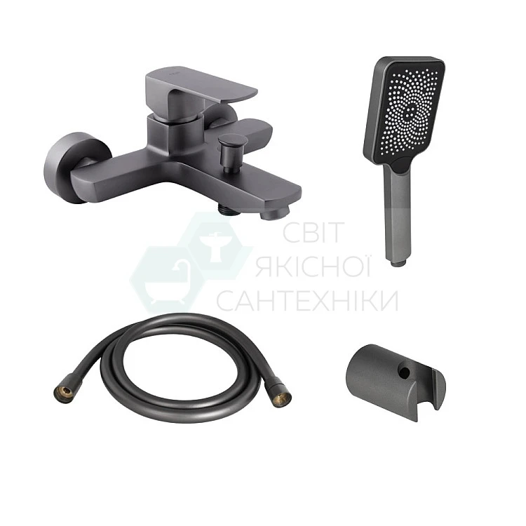 Описание товара - Комплект Qtap Lipno смеситель для ванны с душевым комплектом QTNH3023101DG47273 графит