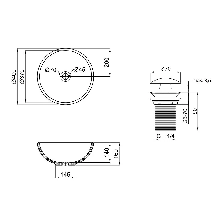 Комплект Qtap Owl: Раковина накладная круглая 400х400х155 мм White + Донный клапан PU02
