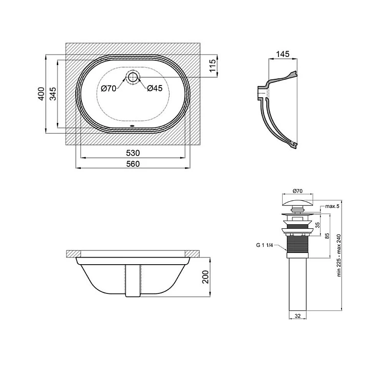 Комплект Qtap Stork: Раковина врезная овальная 570x390x210 мм White + Донный клапан PU02O