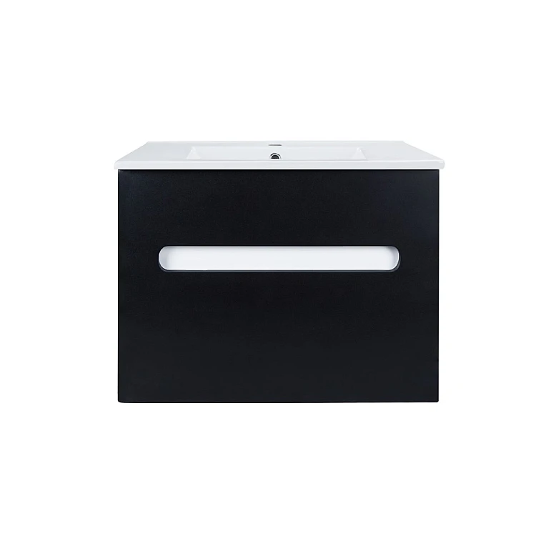 Тумба подвесная с умывальником Qtap Virgo 80х47 QT1871TNА8013080CW черный/белый