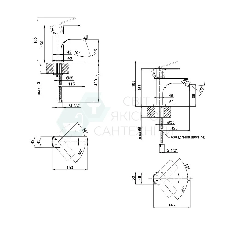 для умывальника, для биде