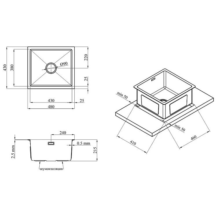 Кухонная мойка Kroner KRP Schwarze - 4843HM PVD
