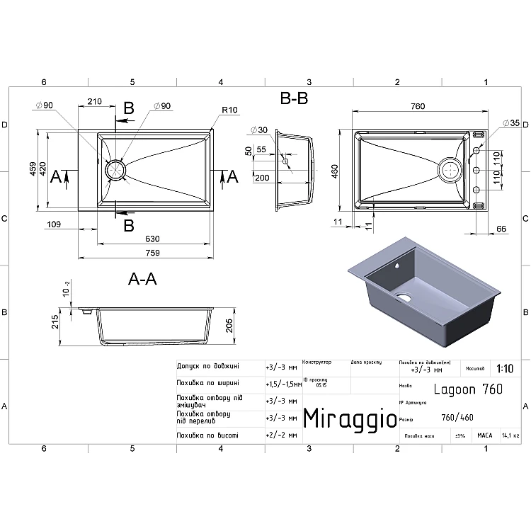 Характеристики - Кухонная мойка LAGOON 760 gray