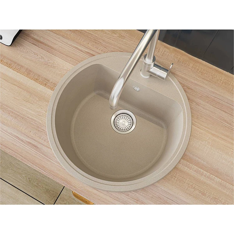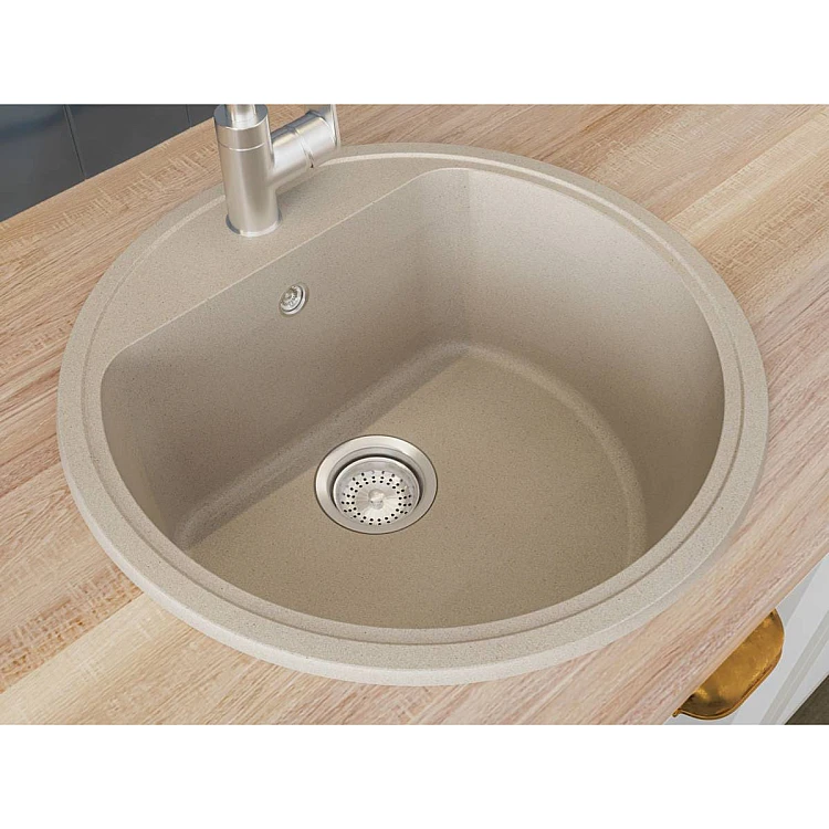 Кухонна мийка MALIBU sand на 80% состоит из кварцевого песка и на 20% из полиэфирной смолы, которая обеспечивает прочность этого изделия. Кухонная мойка выдерживает перепады температур от -70 до +70 °C и не поддается воздействию агрессивных бытовых красителей.