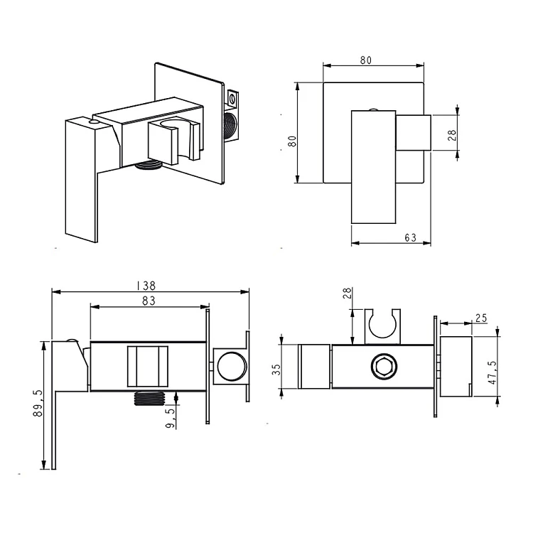 Характеристики - Набор для гигиенического душа Lidz Kubis 111 Black LDKUB111BLA46108 прямоугольный