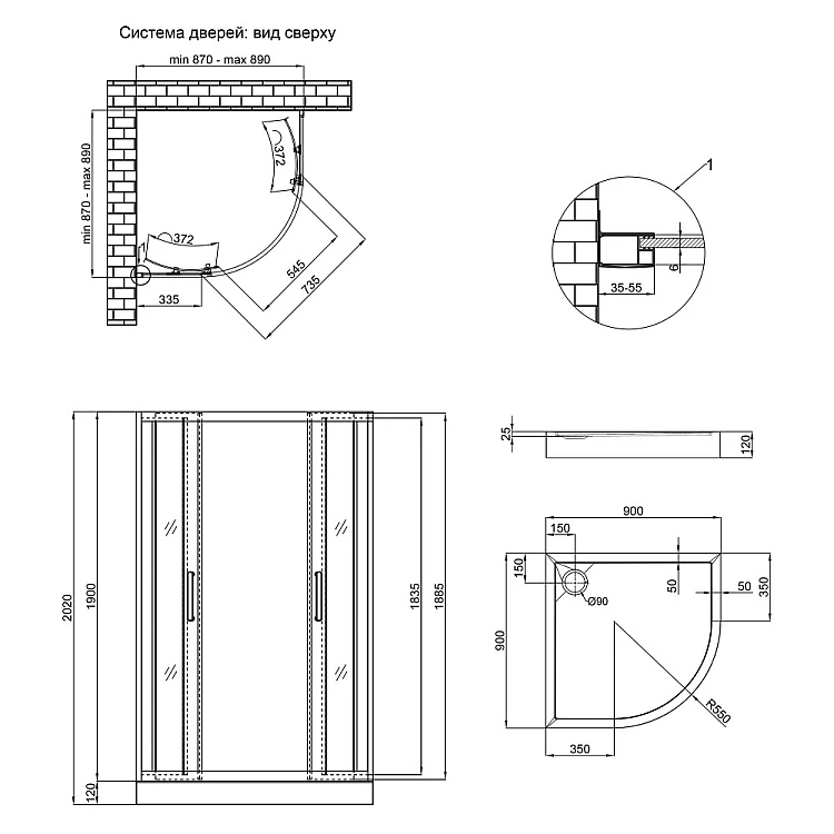 Получите AI советы по Набор Qtap душевая кабина Taurus CRM1099AC6 Clear 2020x900x900 мм + поддон Robin 309912C 90x90x12 см с сифоном
