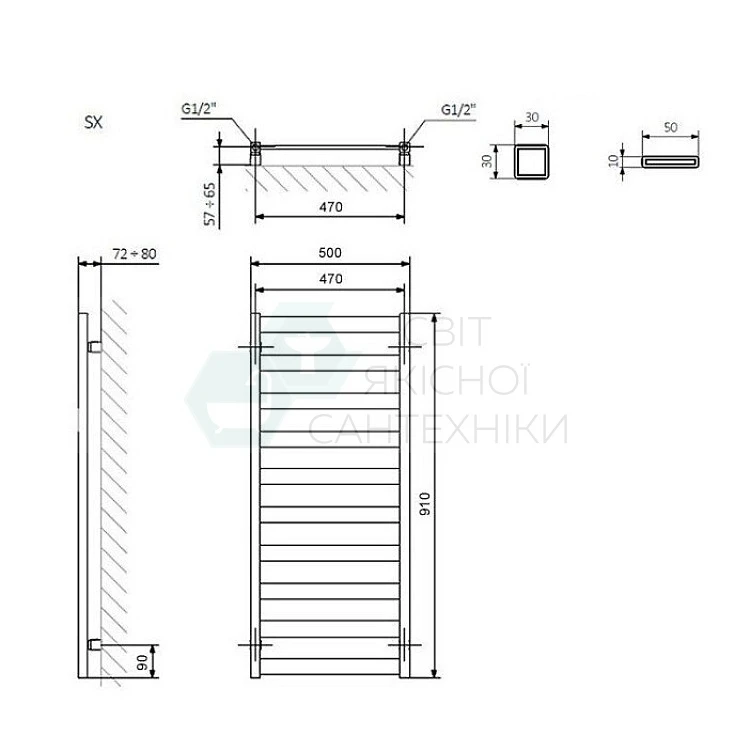 Характеристики - Полотенцесушитель черный матовый RAL 9005 TERMA VIVO 910x500 мм водяной SX