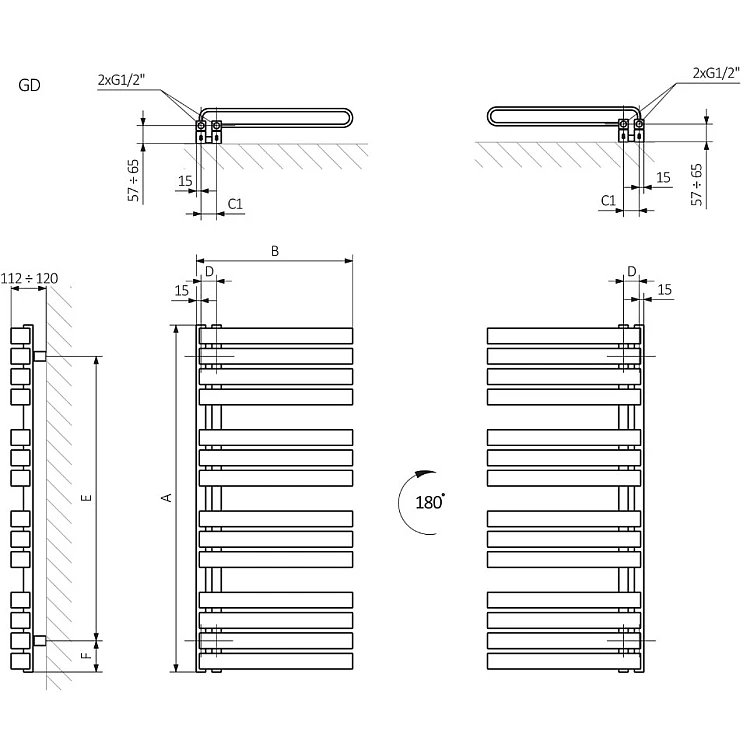 Характеристики - Полотенцесушитель водяной TERMA WARP S 655x500 WGWAS065050K742GD, серый глянец