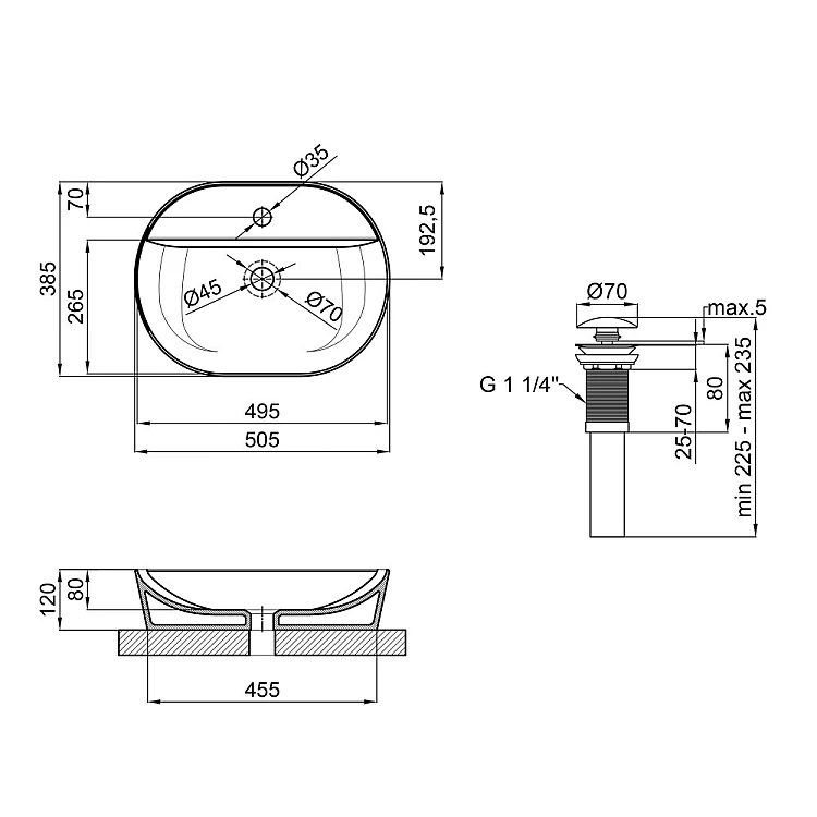 Умывальник-чаша Qtap Scorpio 50х38 с донным клапаном QT142202MBMB черный матовый