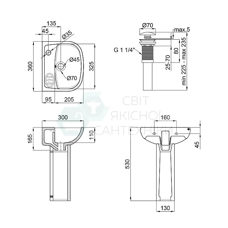 Умывальник с пьедесталом Qtap Baby 37x30 с донным клапаном QT2311LP304BW