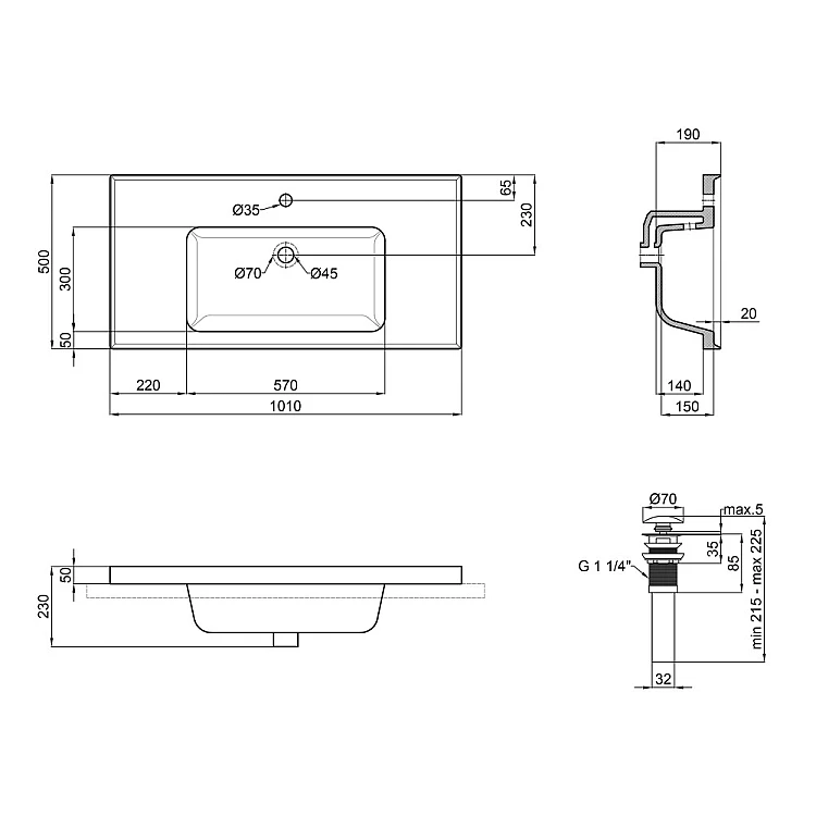 Умывальник врезной Qtap Albatross A 100х50 с донным клапаном QT01115100AW