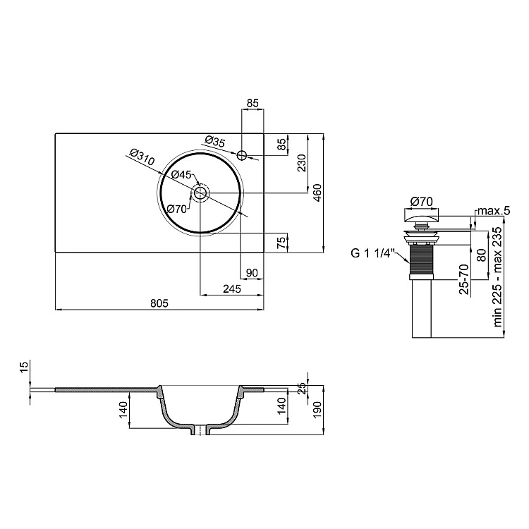 Характеристики - Умывальник врезной Qtap Virgo 80х46 с донным клапаном QT1811FL8130ARRW R-правосторонний