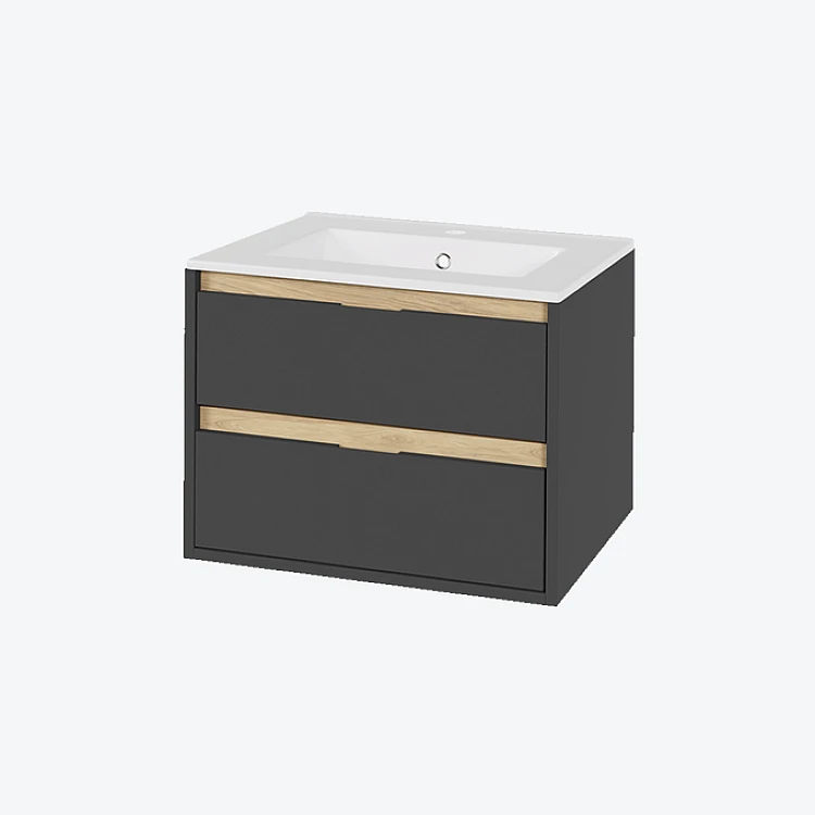 Шкафчик подвесной с раковиной AS Excellent Tuto 60 серый/дуб (2 шухляды)
