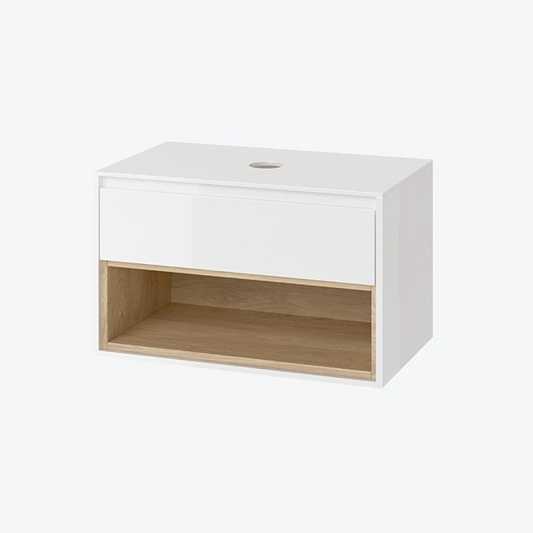 Получите AI советы по Шкафчик подвесной под раковину со столешницей Excellent Tuto 80 белый глянец/дуб