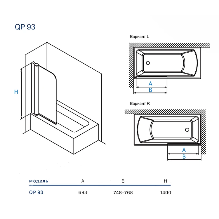 Штора для ванной Koller Pool QP93 06-01-01-29