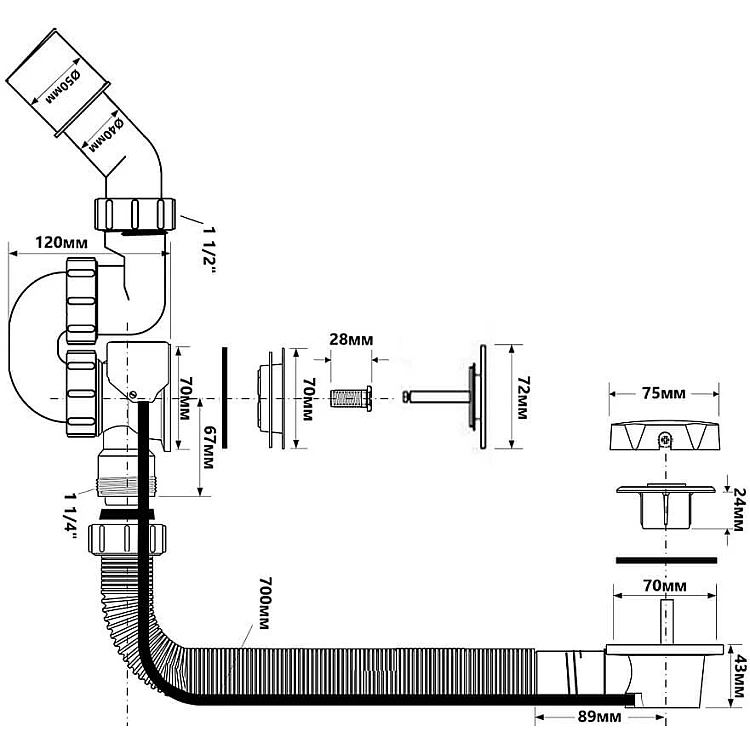 Сифон для ванны автомат Mcalpine SZC HC31M-S2-SC