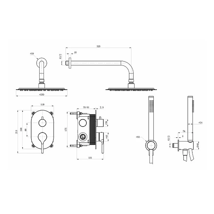 Смеситель для душа внутреннего монтажа с душевым комплектом Armaform Silvia Gold 2039-501-31