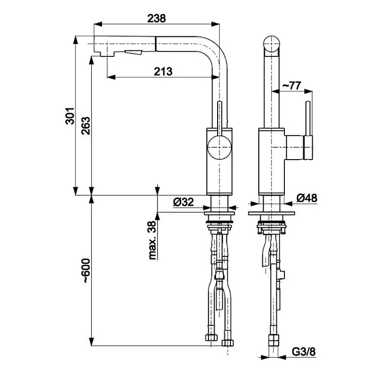 Получите AI советы по Смеситель для кухни с вытяжным изливом KFA ARMATURA DUERO BASIC INOX 6623-110-34 медь