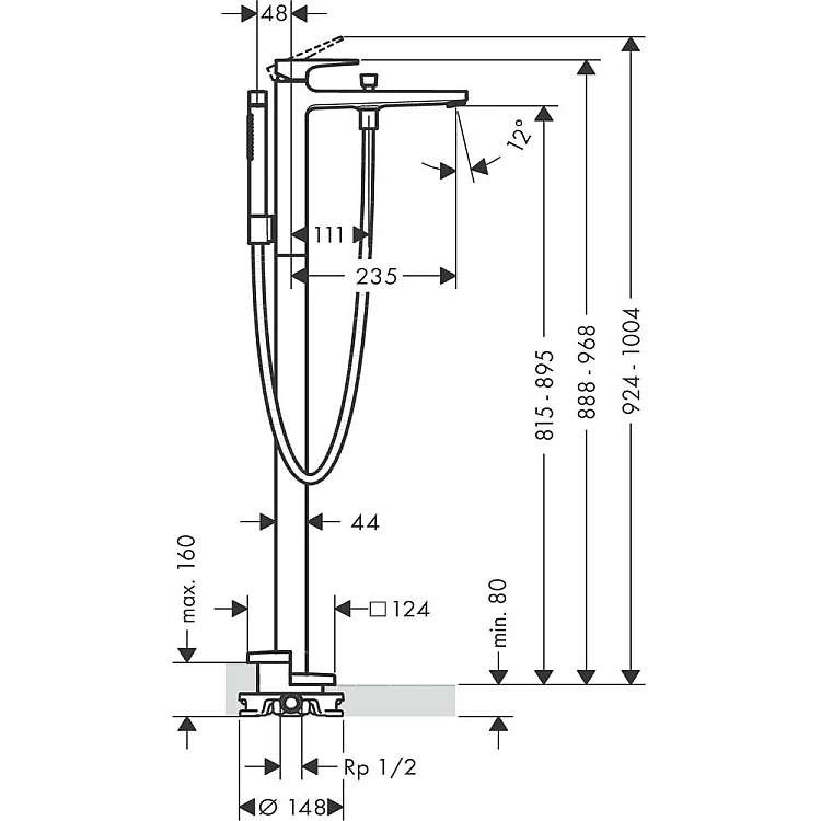 Смеситель для напольной ванны Brushed Black Chrome HANSGROHE Metropol 32532340