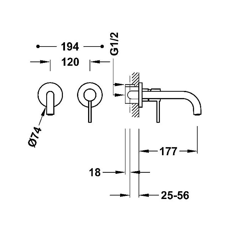 Смеситель для раковины со стены TRES Study 26230001 хром