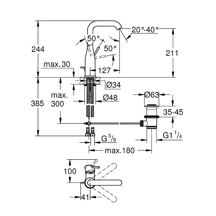 Получите AI советы по Смеситель для умывальника GROHE Essence L-Size, графит матовый, 24174AL1