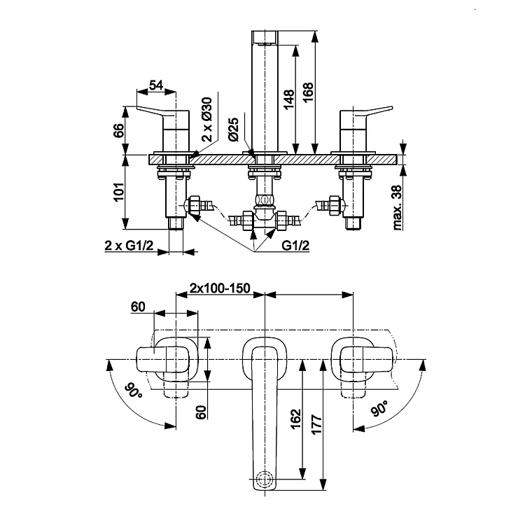 Смеситель для умывальника на 3 отверстия KFA ARMATURA MALAGA 4522-221-00 хром