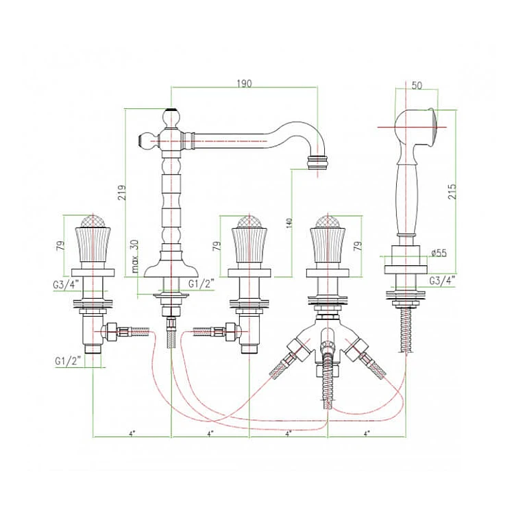 ретро, с душем, двухвентильный
