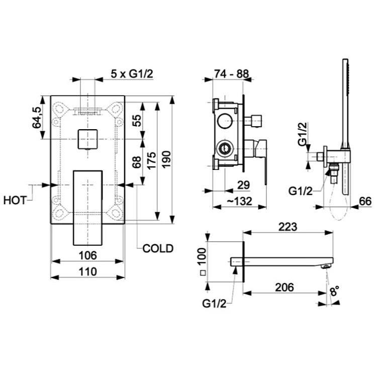 Получите AI советы по Смеситель для ванны с комплектом KFA ARMATURA LOGON 5139-401-81 черный