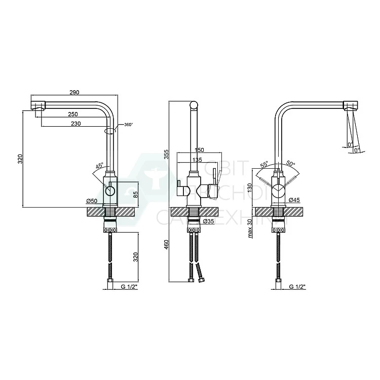 Характеристики - Смеситель для кухни Lidz Aria 020F1 с подключением для питьевой воды (k35) LDARI020F1NKS34941 Nickel
