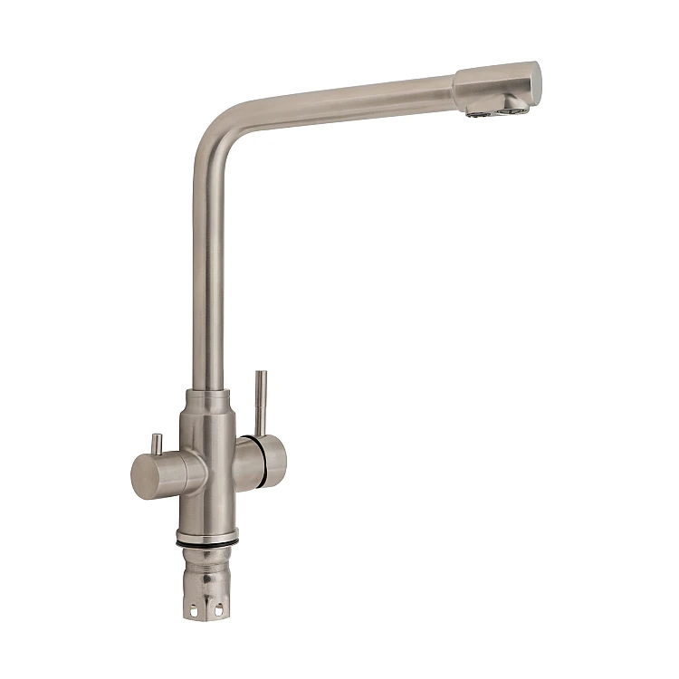 Смеситель для кухни с фильтром Lidz (NKS) 12 32 020F-13 изготовлен из нержавеющей стали. Благодаря никелированной брошенной поверхности имеет оригинальный внешний вид. Выполнен в современном стиле, в котором предусмотрено 2 излияния: вода для бытовых расходов, а также с фильтром для питьевой воды. Такой смеситель имеет дополнительный рычаг, позволяющий переключать режим подачи питьевой воды. Он не только удобен и практичн, но и станет идеальной находкой на кухне.