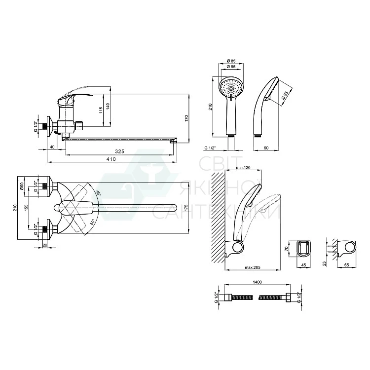 однорычажный, с душем