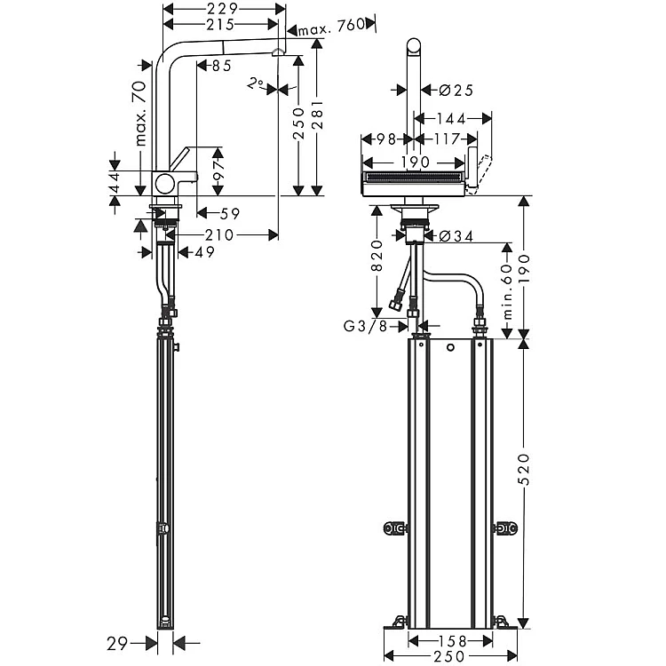 Смеситель кухонный с вытяжным изливом Sbox HANSGROHE Aquno Select M81 250 2jet 73830000