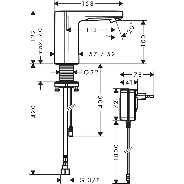 Смеситель сенсорный для умывальника на холодную воду 230 V HANSGROHE Vernis Blend 71504000