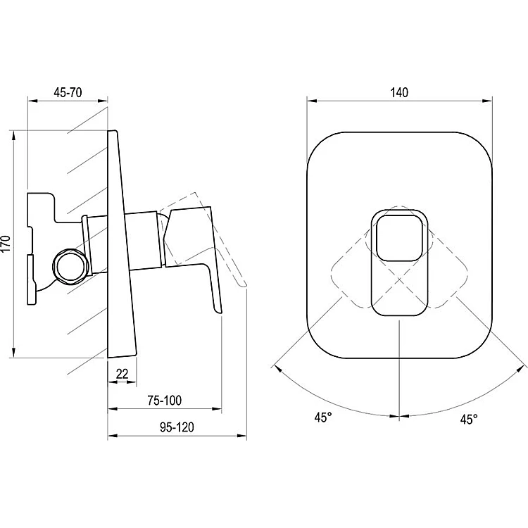 Арматура установленного на стене смесителя слегка наклонена на 10° по направлению к пользователю, что делает управление им еще более удобным, дизайн еще более "встречным", а удовольствие от использования смесителем еще больше. Смеситель предназначен для использования встраиваемого механизма R-box, который значительно упрощает его работу и улучшает конечный результат.