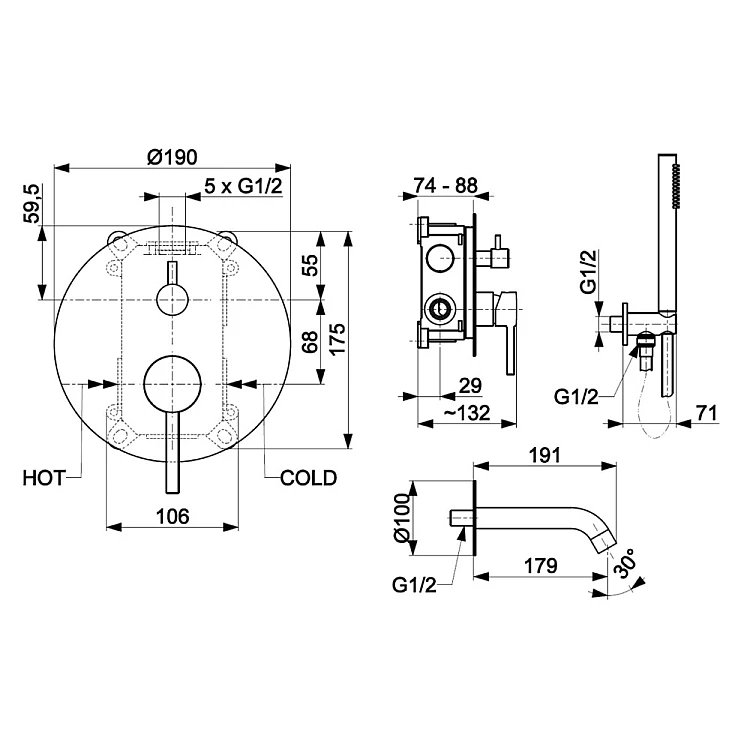 Получите AI советы по Смеситель скрытого монтажа для ванны KFA ARMATURA MOZA 5039-401-61 графит