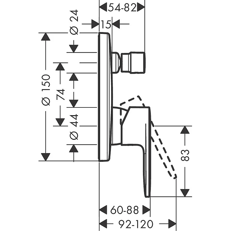 Смеситель скрытого монтажа ванна/душ с защитой EN1717 Chrome HANSGROHE Vernis Blend 71467000