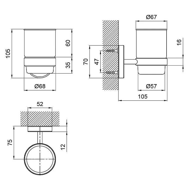 Стакан с держателем Lidz Oreo 0401 настенный (матовое стекло) LDORE0401CRM22163 Chrome