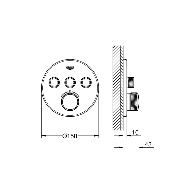 Важно: устанавливается вместе со встроенным блоком GROHE Rapido SmartBox (продается отдельно).