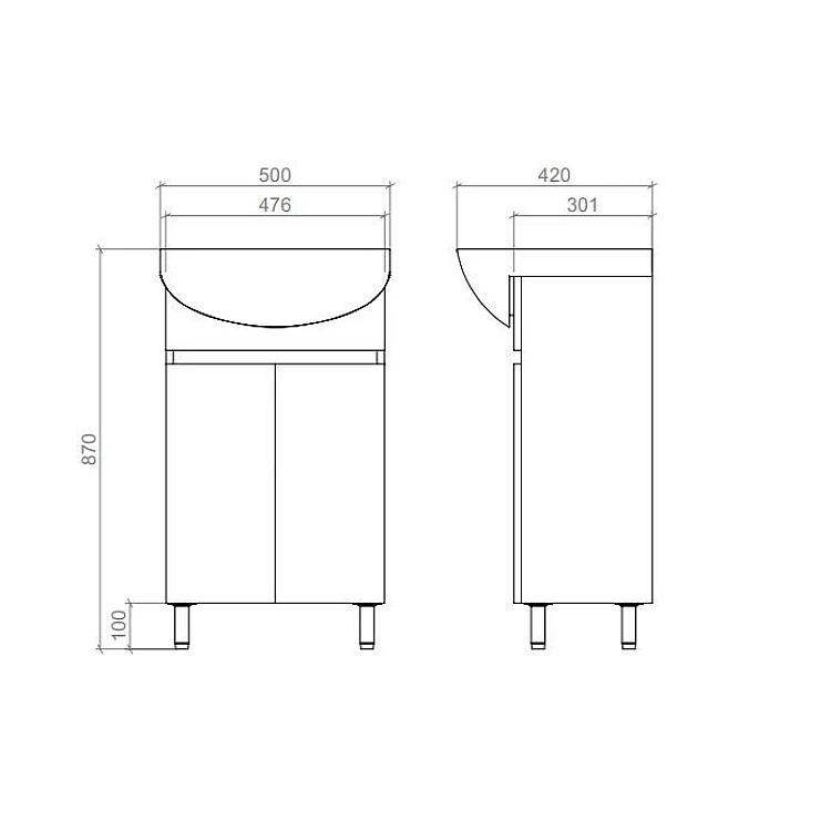 Тумба напольная Mirater Mira с умывальником 82х50х31 Белая