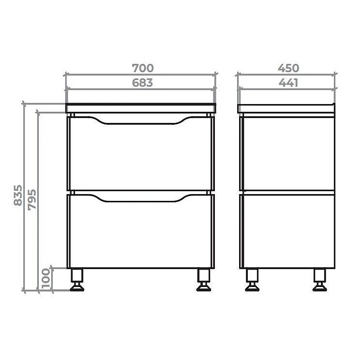 Тумба напольная Mirater Sacramento с умывальником 70 Серая