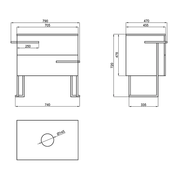 Тумба напольная Qtap Taurus 70х47 со столешницей QT2480TNT703WO белый дуб