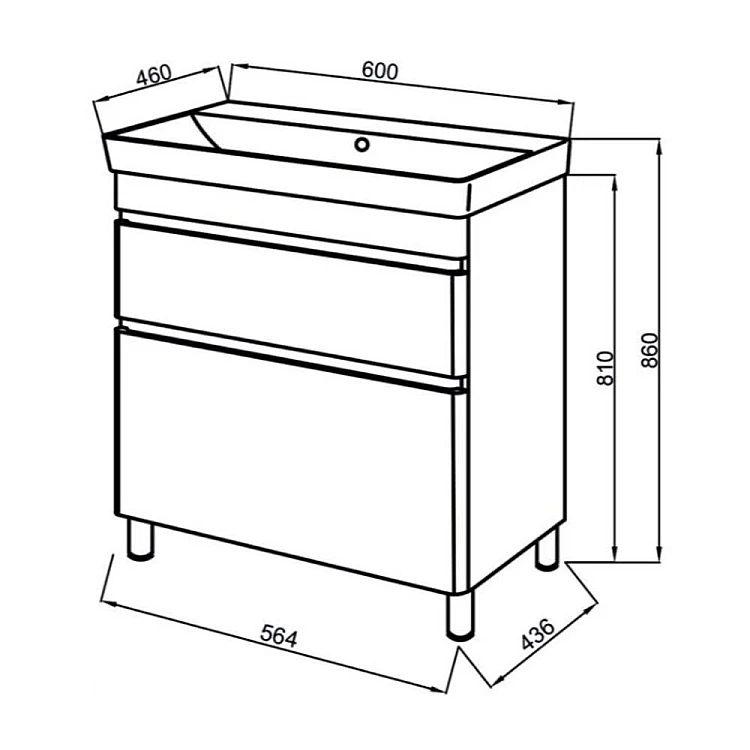Описание товара - Тумба ЮВВІС напольная ТНБ-2 Д 60 с умывальником VIVACE антрацит