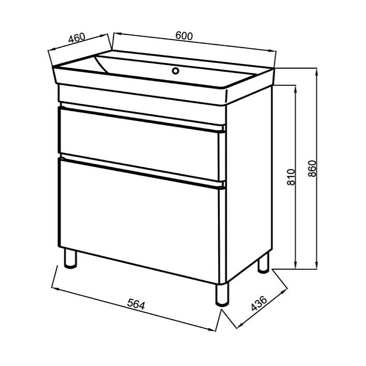 Характеристики - Тумба ЮВВІС напольная ТНБ-2 Д 60 с умывальником VIVACE бетон
